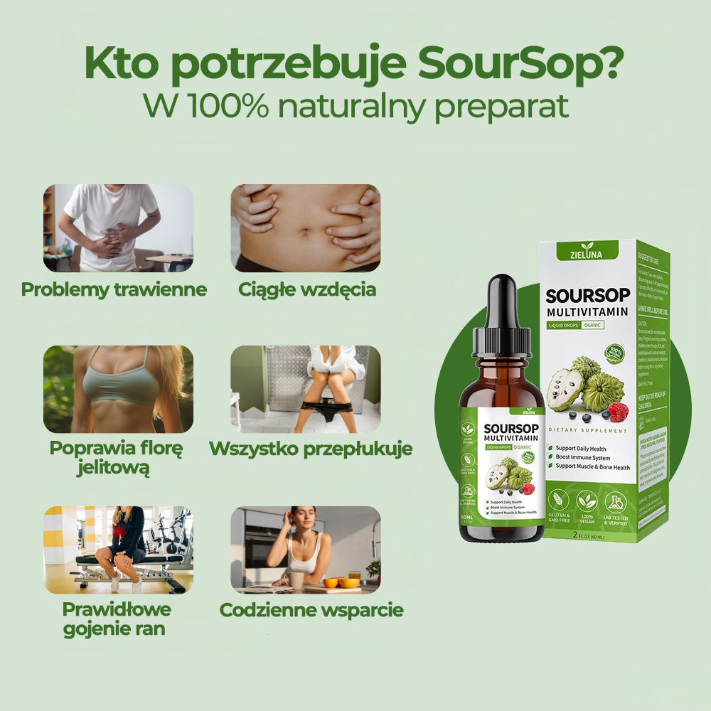 Per questo abbiamo creato il primo estratto di SourSop 100% biologico — per più energia, una sensazione di leggerezza e una vera chiarezza interiore.